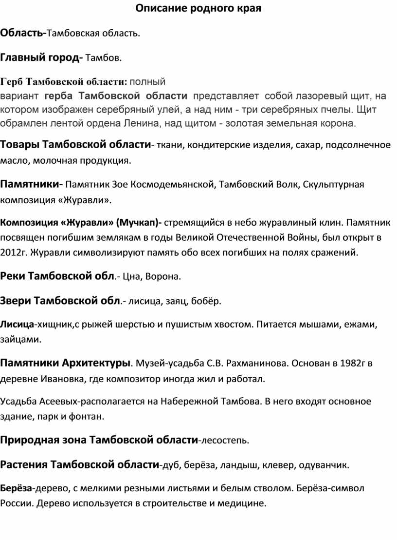 Описание родного края