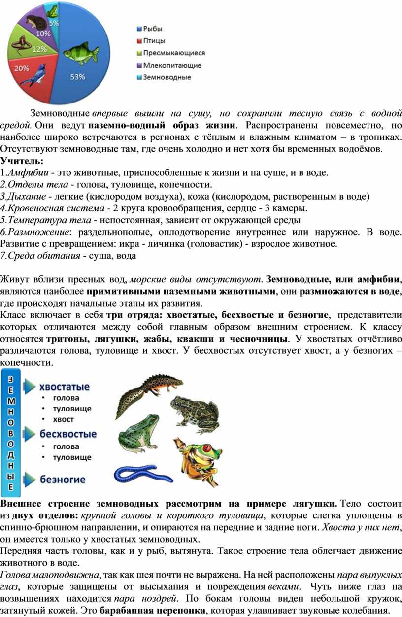 Тема: «Земноводные». Внешнее и внутреннее строение, её земной образ жизни.