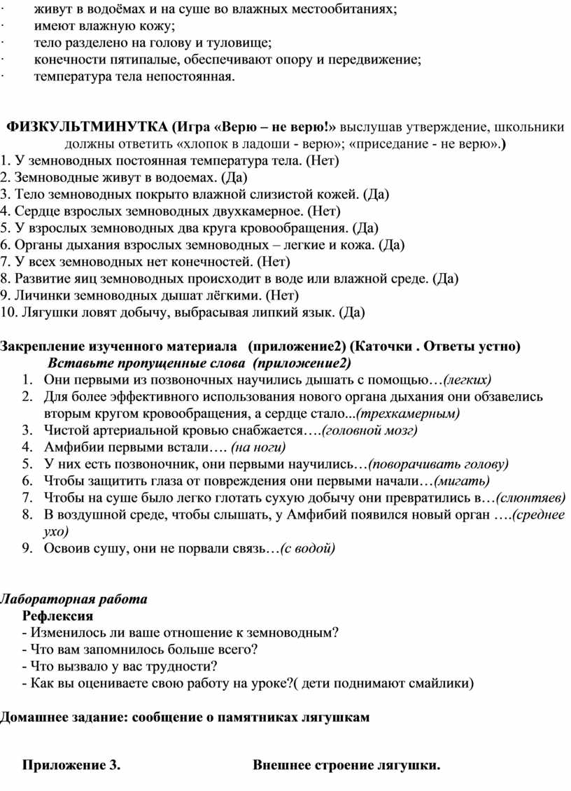 особенностях внешнего и внутреннего строения земноводных на примере лягушки в