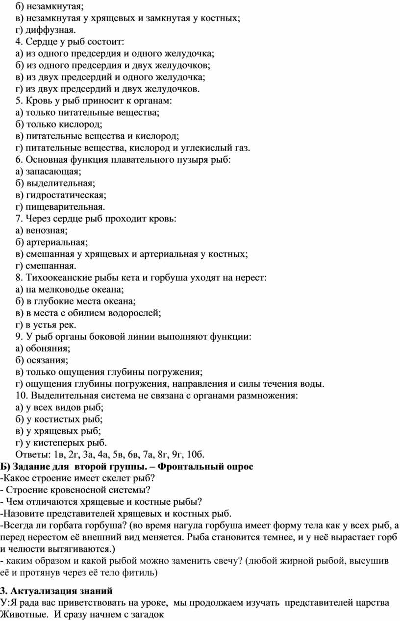 1. Рыбы относятся к типу: