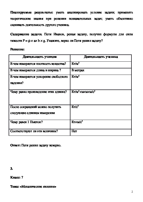 Тема: «Сила тяжести»Планируемые результаты: уметь анализировать условие задачи; применять
