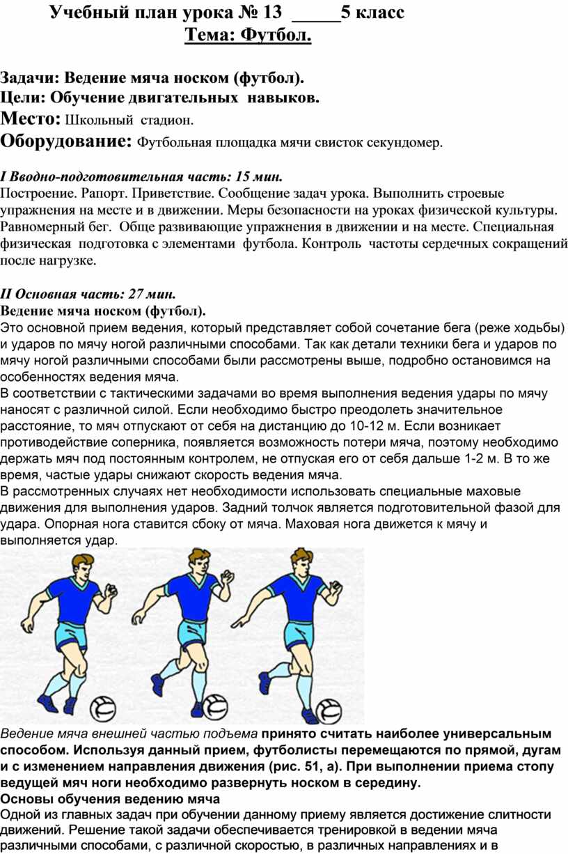 1. Ведение осуществляется путем несильных, последовательных толчков мяча ненапряженной стопой.