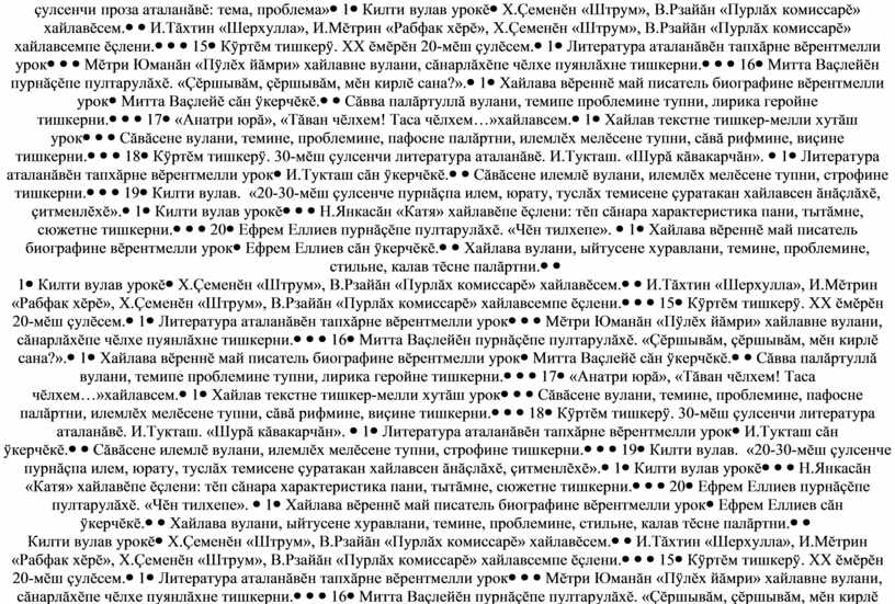 Сăвва палăртуллă вулани, темипе проблемине тупни, лирика геройне тишкерни. |