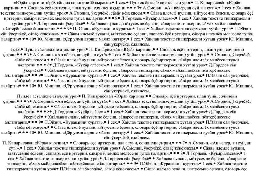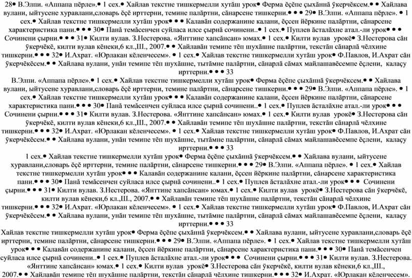 Словарь ĕçĕ ирттерни, план туни, сочинени çырни. |
