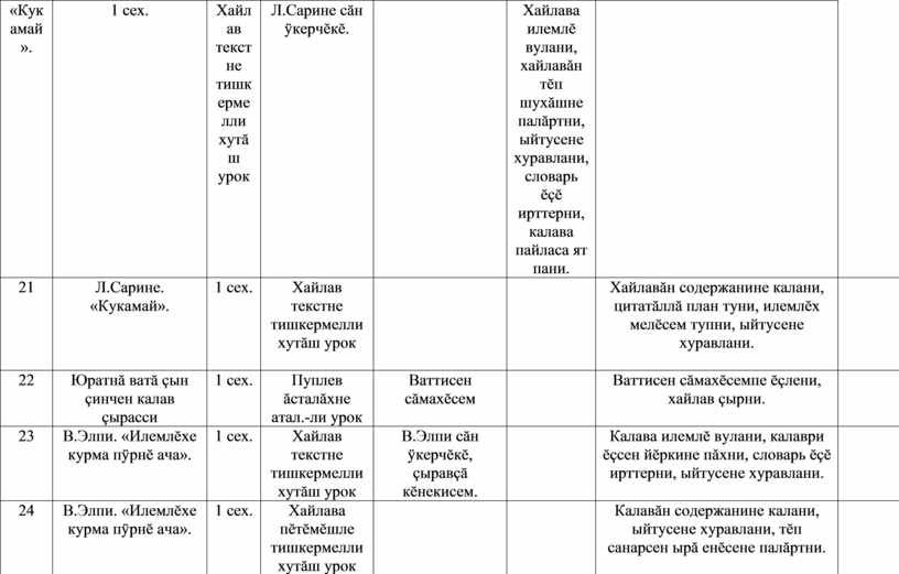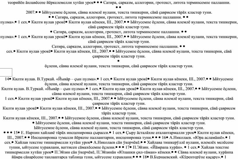 Литература теорийĕн ăнлавĕсене йĕркелемелли хутăш урок |