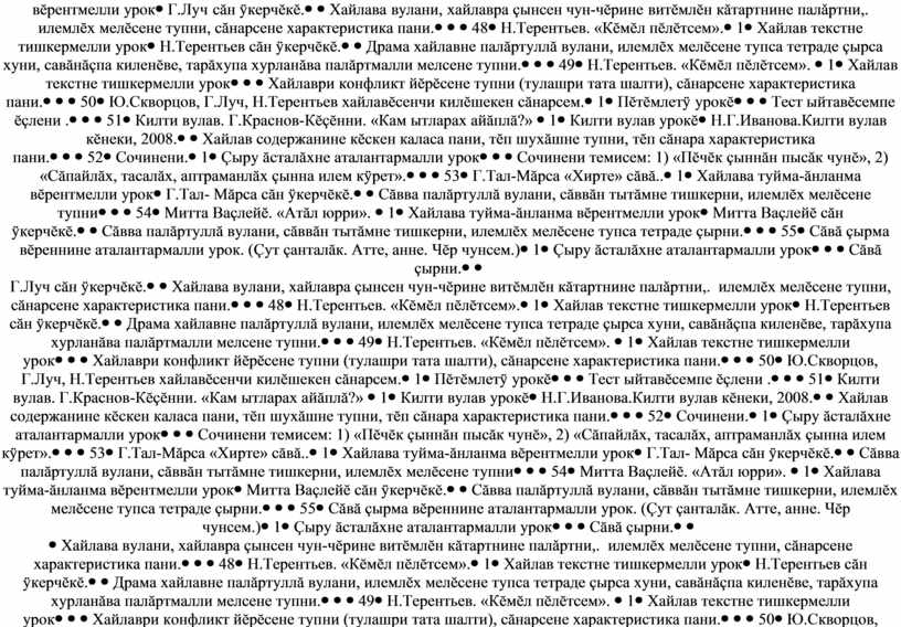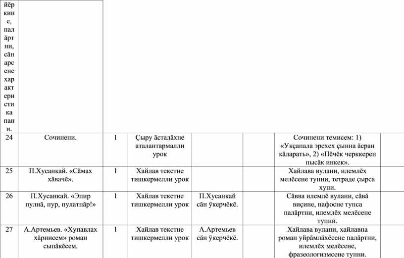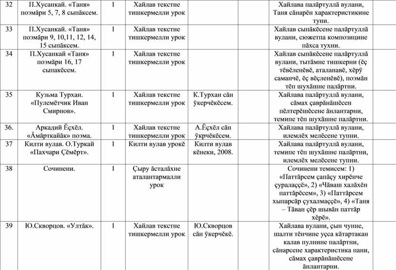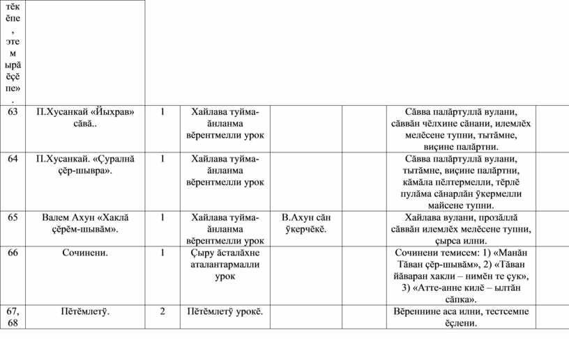 Сочинени темисем: 1) «Пĕчĕк çыннăн пысăк чунĕ», 2) «Сăпайлăх, тасалăх, аптраманлăх çынна илем кÿрет». |