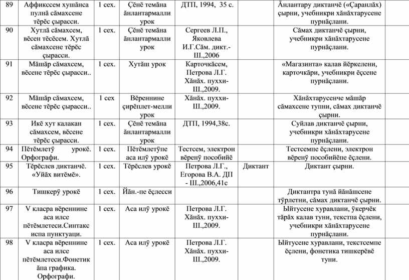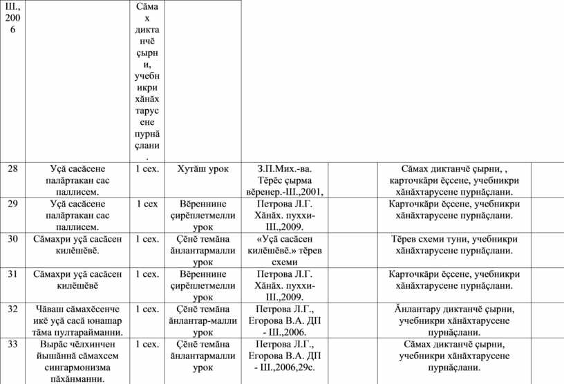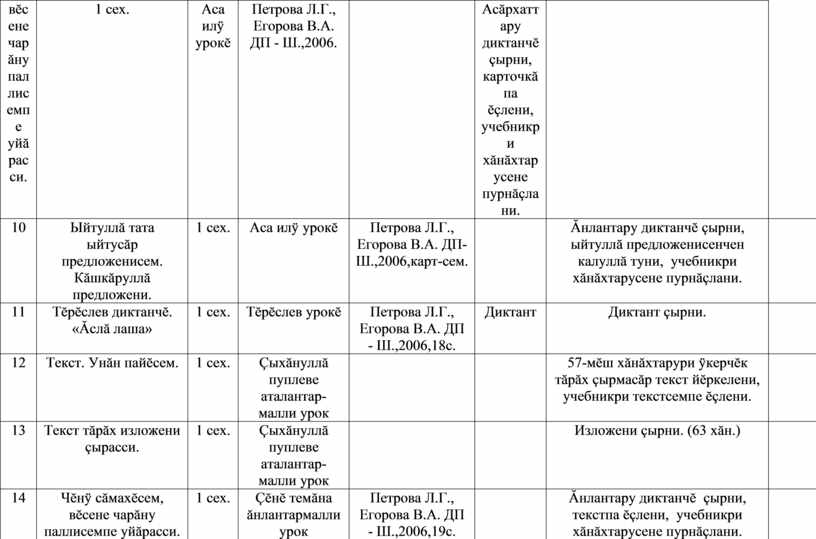 Тĕрев схемисем, Петрова Л.Г., Егорова В.А. ДП - Ш.,2006,22с. |