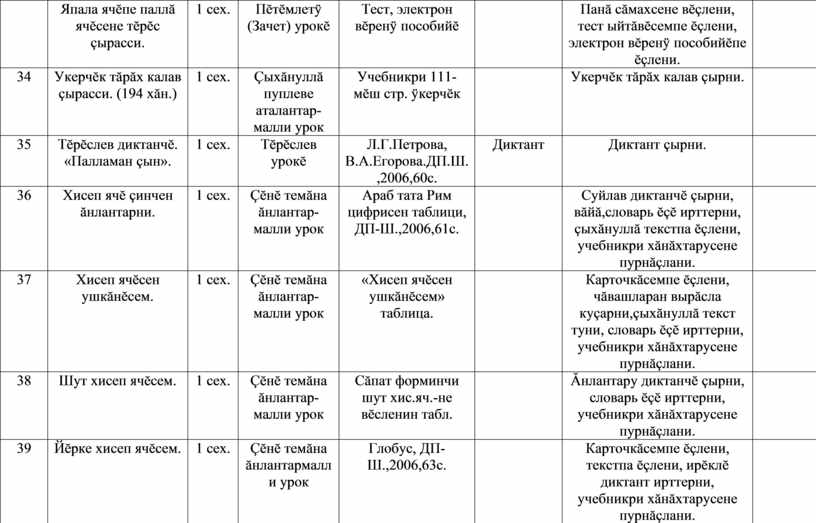 Таблицăпа, , текстпа ĕçлени, сăвă пăхмасăр вĕренни, учебникри хăнăхтарусене пурнăçлани. |