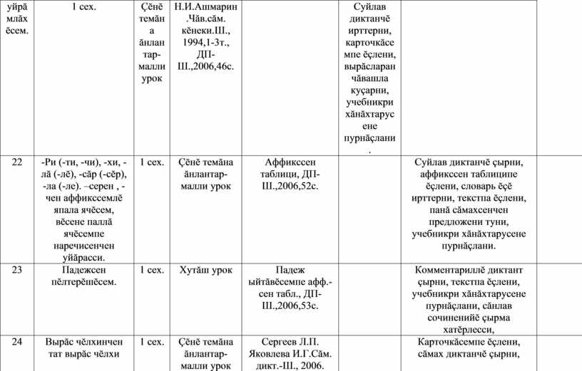 Падеж ыйтăвĕсемпе аффикссен таблици,ДП-Ш.,2006,49с. |