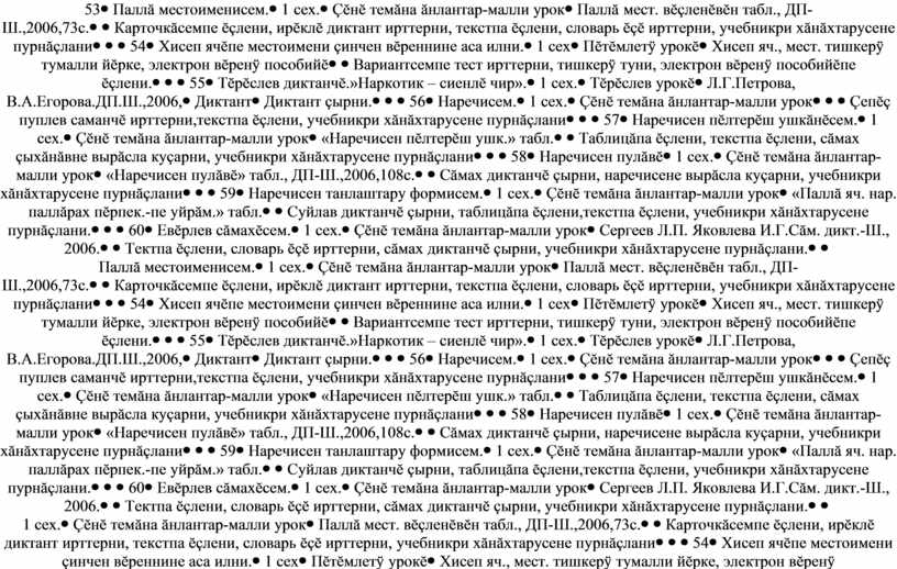 Таврăну мест. вĕçленÿ табл., Л.Г.Петрова, В.А.Егорова ДП-Ш.,2006,69с. |
