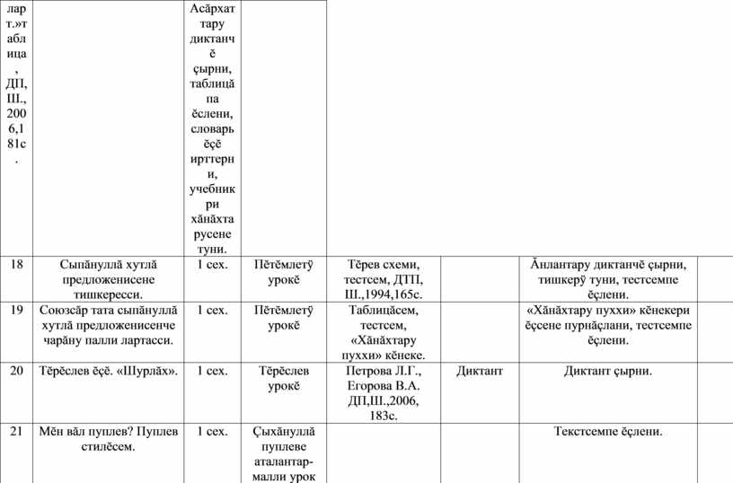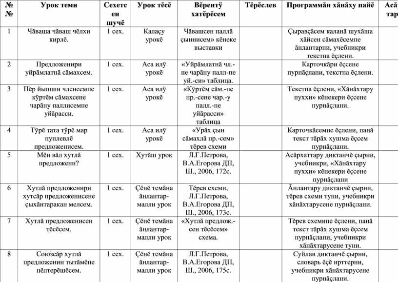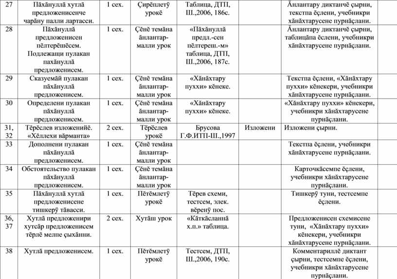 «СХП-че чарăну палли лартасси» таблица, ДП, Ш., 2006, 176с. |