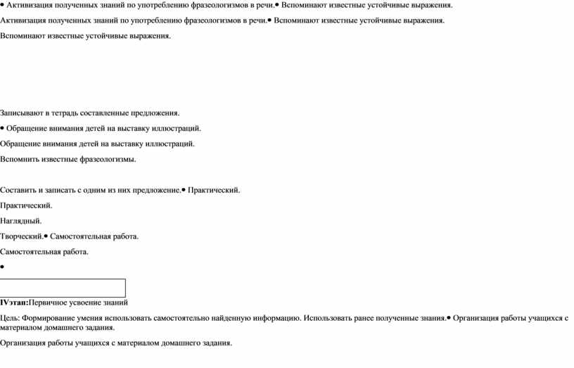 Активизация полученных знаний по употреблению фразеологизмов в речи. |
