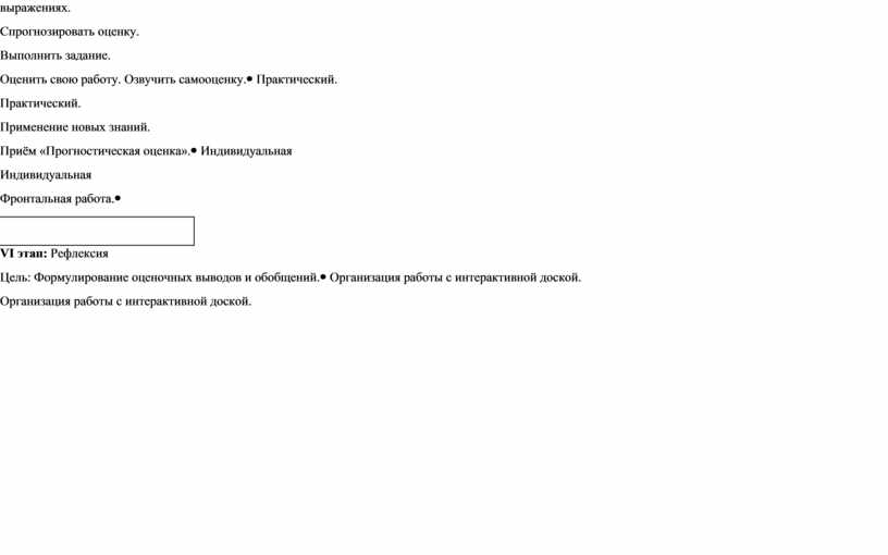 VI этап: Рефлексия Цель: Формулирование оценочных выводов и обобщений. |