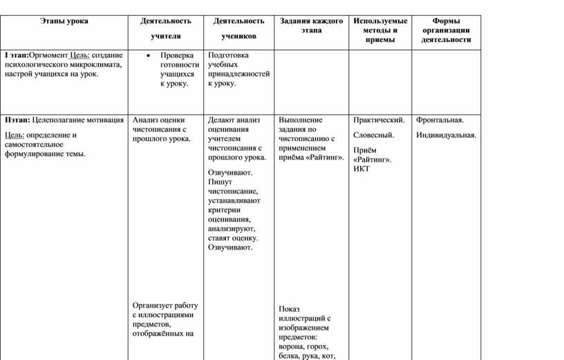 1. Проверка готовности учащихся к учебной деятельности 2. Создание мотивирующей ситуации |