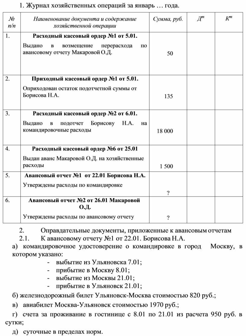 2. Журнал хозяйственных операций за январь … года.