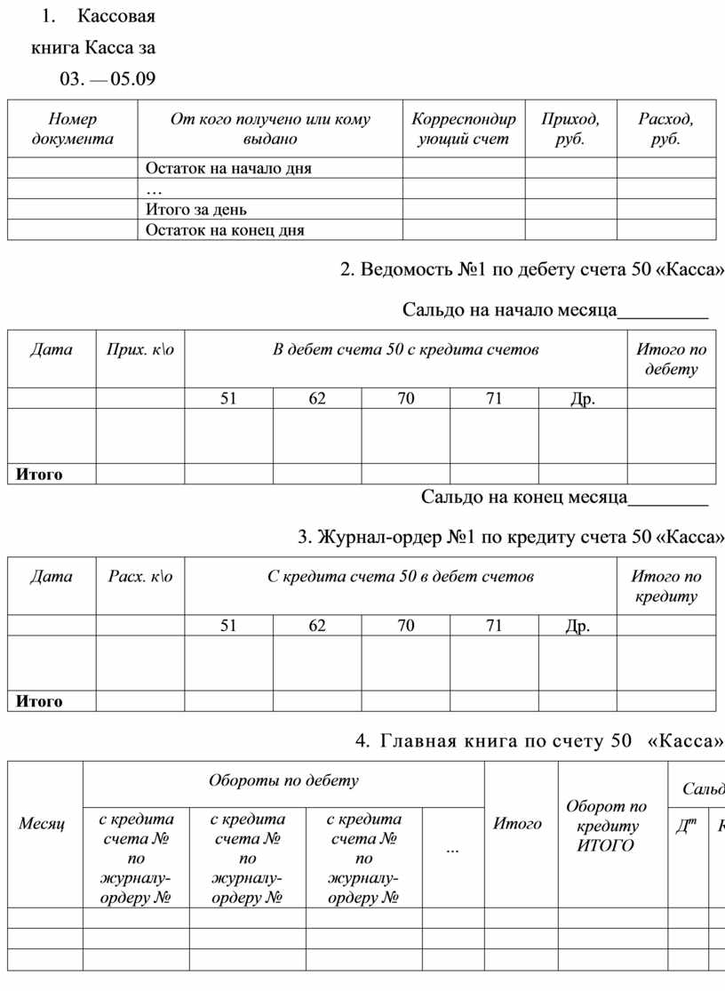4. Ведомость №1 по дебету счета 50 «Касса»
