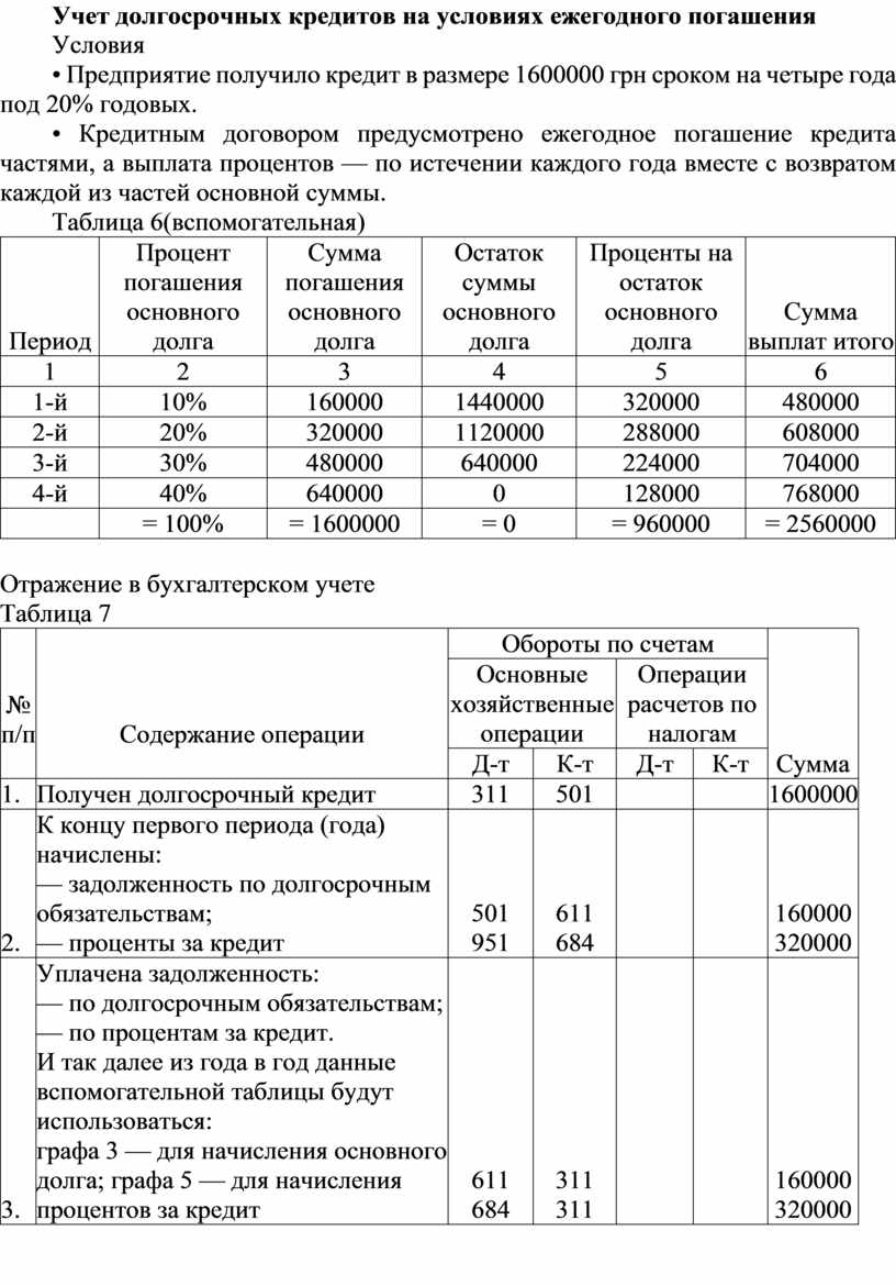 Учет долгосрочных кредитов на условиях ежегодного погашения