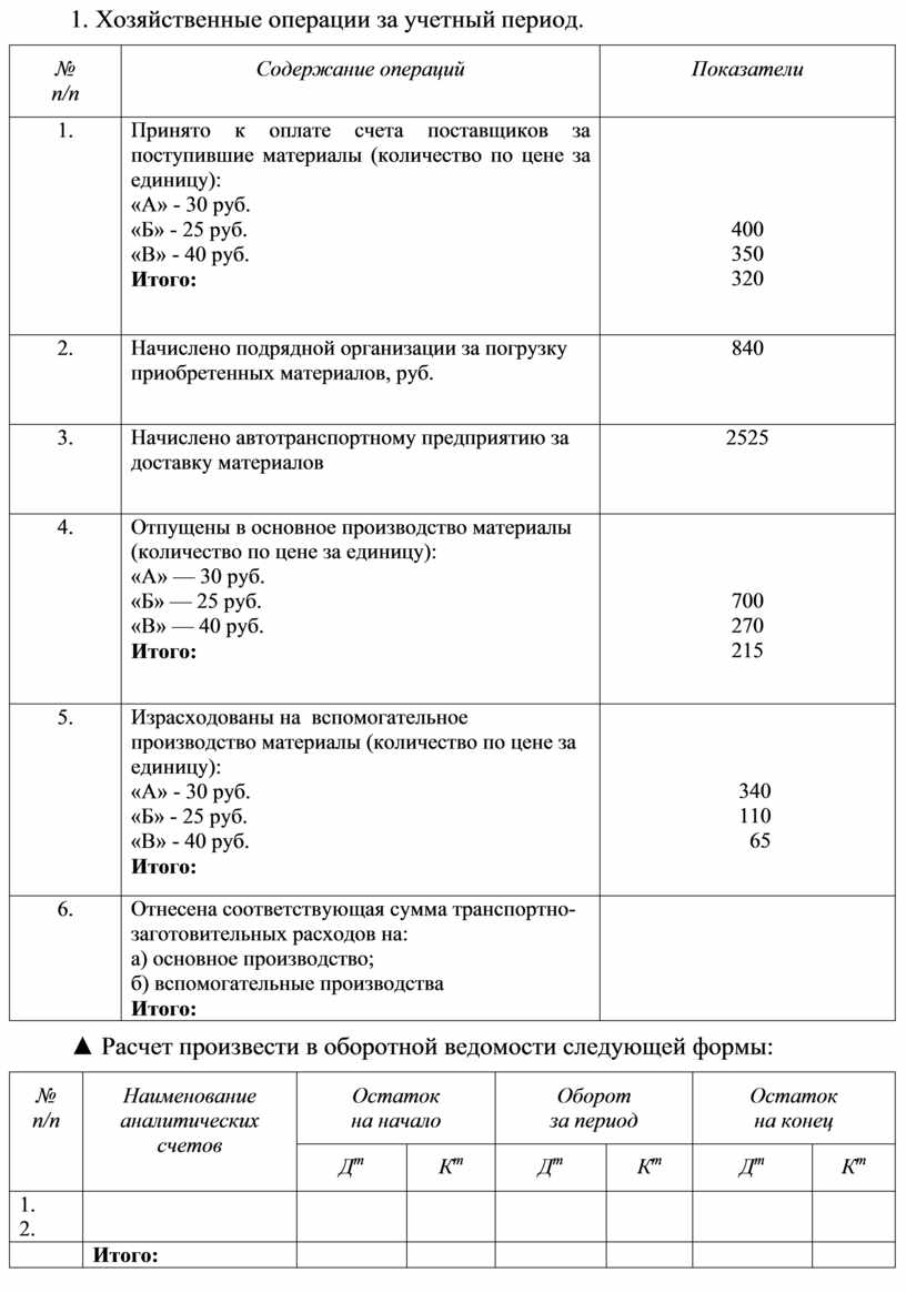 3. Хозяйственные операции за учетный период.