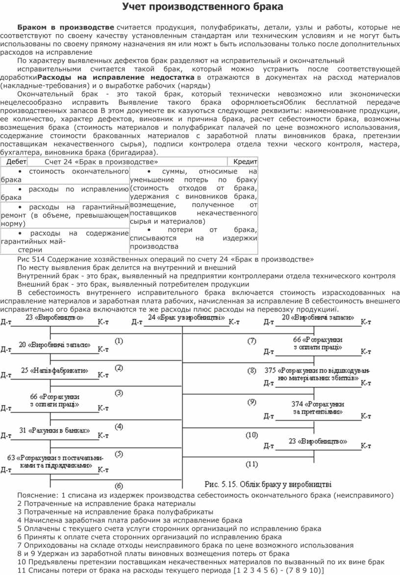 Рис 514 Содержание хозяйственных операций по счету 24 «Брак в производстве»