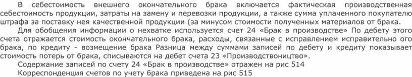 Содержание записей по счету 24 «Брак в производстве» отражен на рис 514