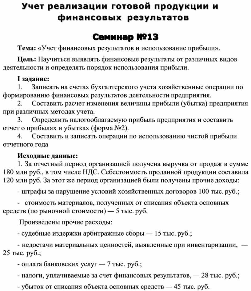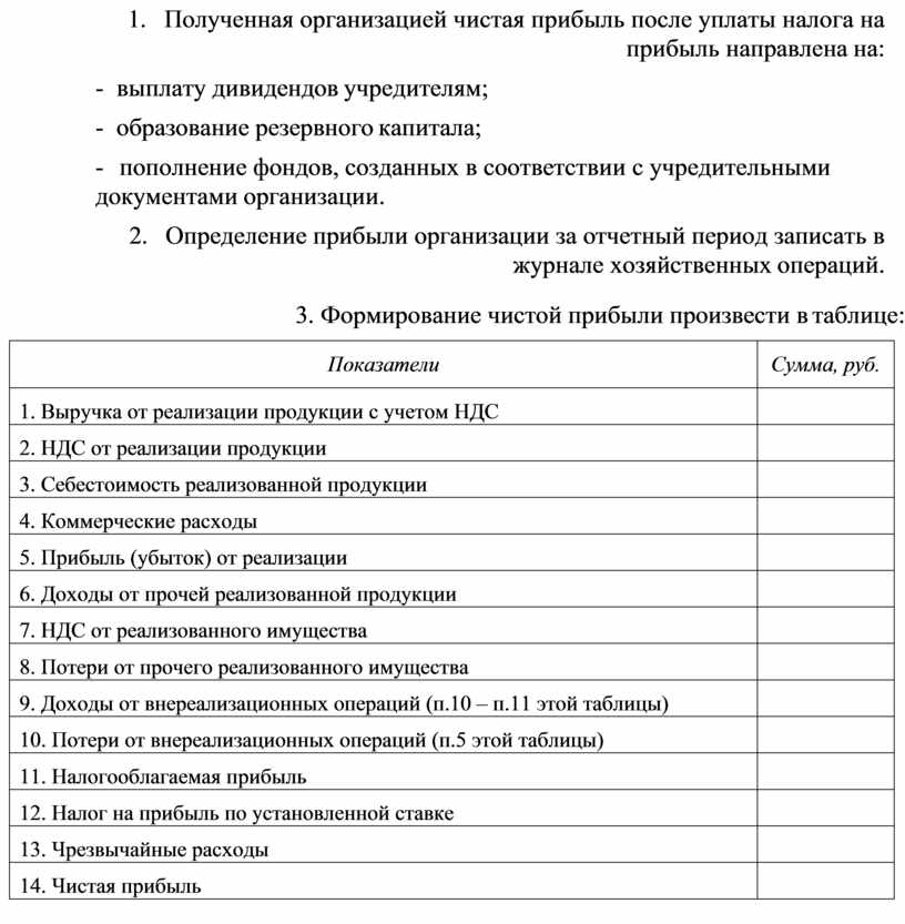 Цель: Научиться выявлять финансовые результаты от различных видов деятельности и определять порядок использования прибыли.