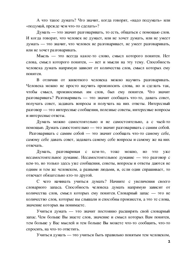 несамостоятельное думание. Несамостоятельное думание — это разговор с
