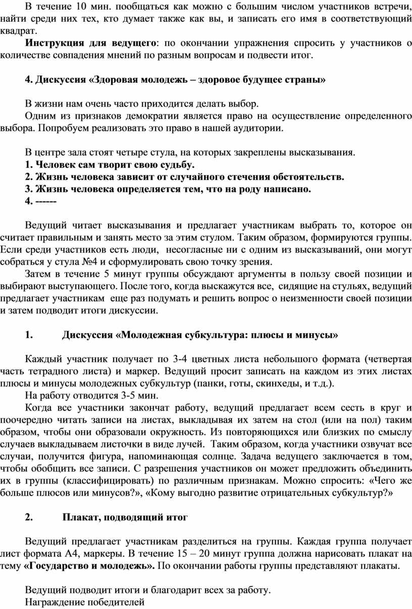 4. Дискуссия «Молодежная субкультура: плюсы и минусы»