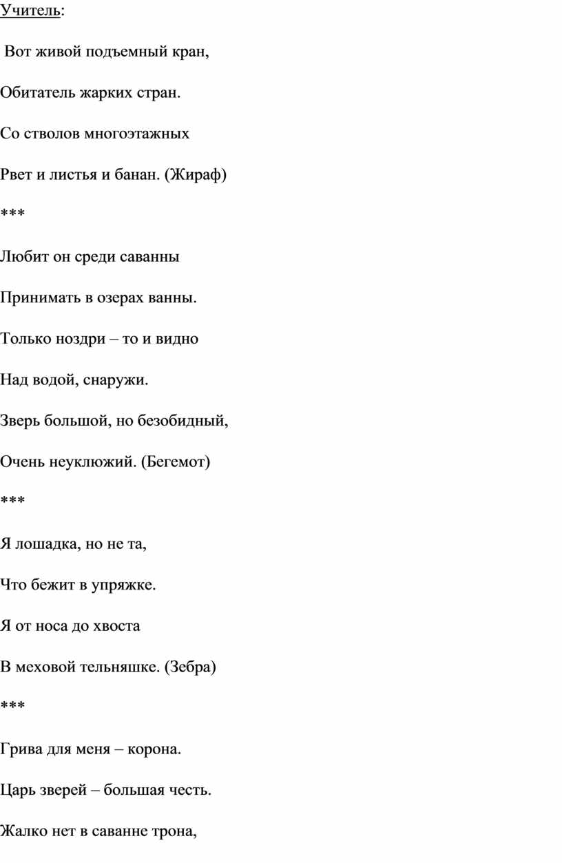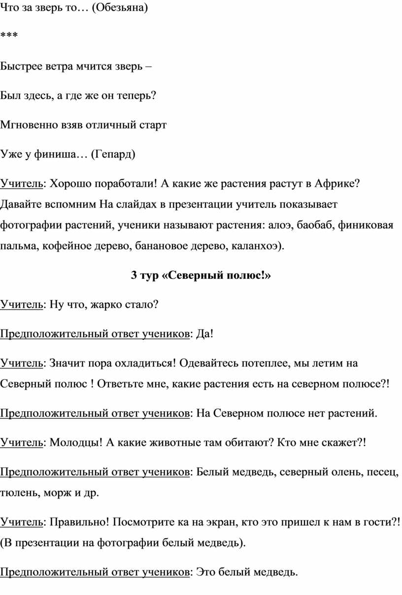 Учитель: Молодцы! А какие животные там обитают? Кто мне скажет?!