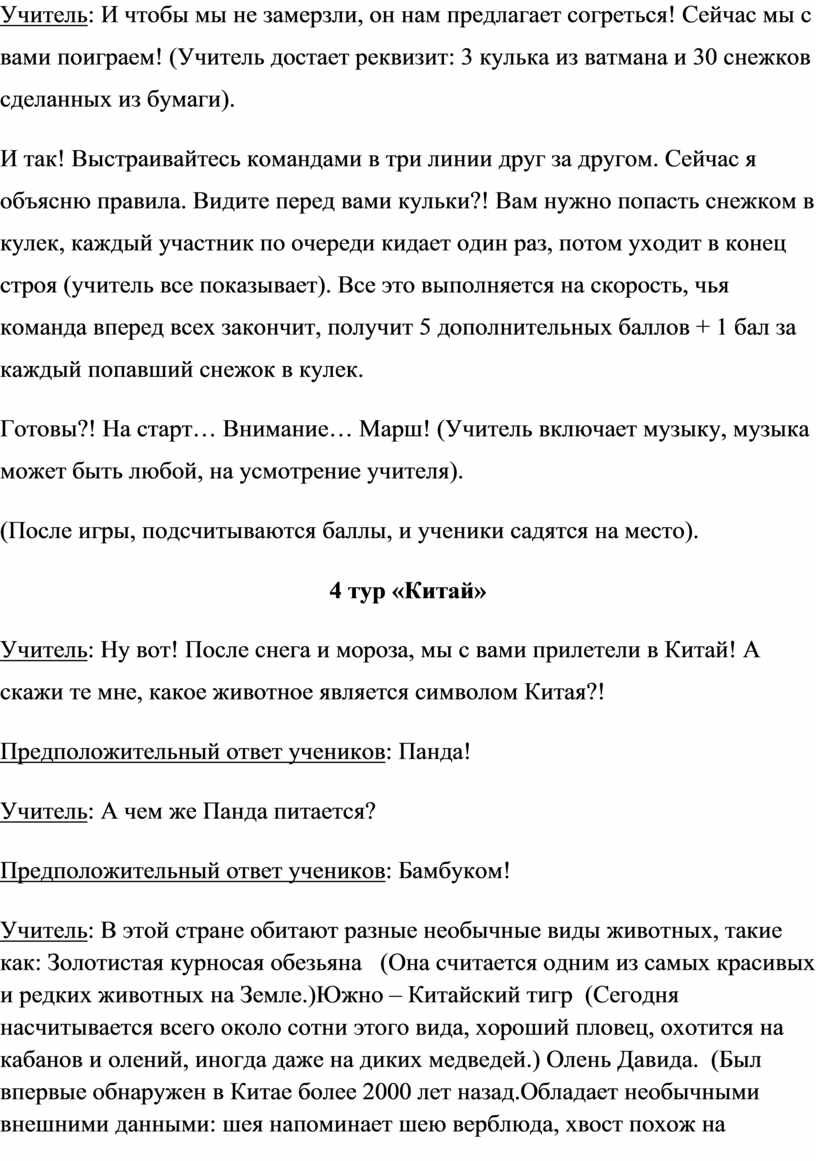 Учитель: Ну вот! После снега и мороза, мы с вами прилетели в Китай! А скажи те мне, какое животное является символом Китая?!