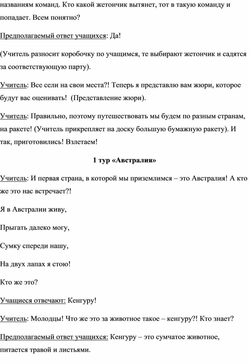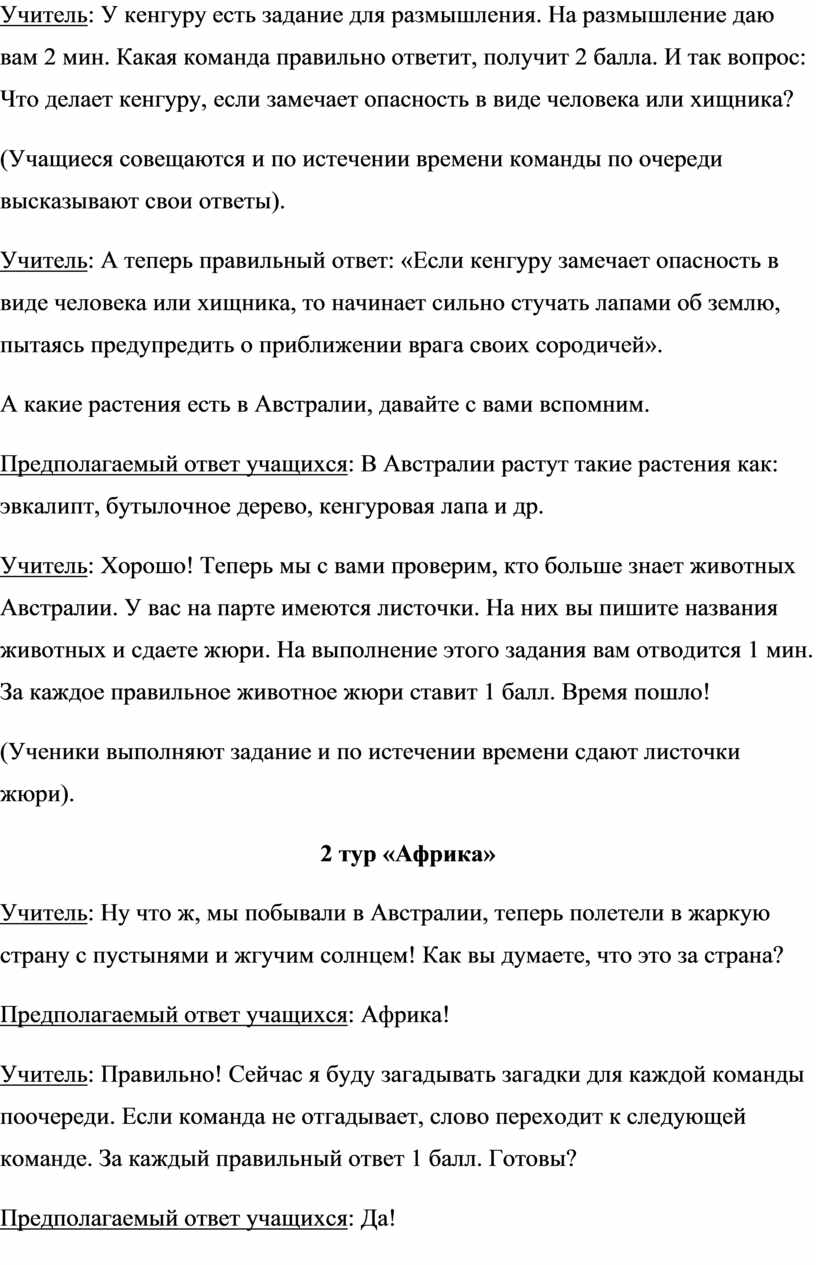 Учитель: Молодцы! Что же это за животное такое – кенгуру?! Кто знает?