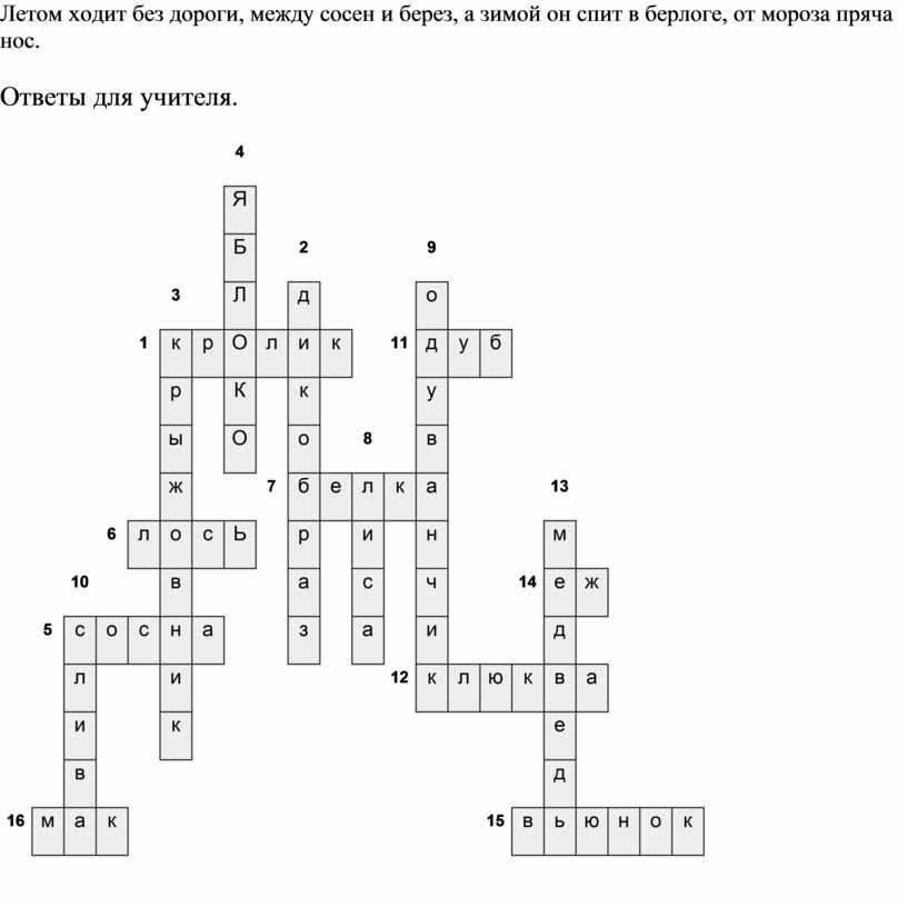 2. Ежик вырос в 10 раз, получился…3. Низок да колюч, сладок да пахуч, ягоды сорвешь, всю руку обдерешь. 4. Само с кулачок, красный бочек, потрогаешь – гладко, откусишь – сладко. 8. В лесу живет, кур в деревне крадет. 9. Над луго парашютики качаются на прутике. 10. Плод все лето зеленого цвета, а ранней осенью – красный с просинью. 13. Летом ходит без дороги, между сосен и берез, а зимой он спит в берлоге, от мороза пряча нос.