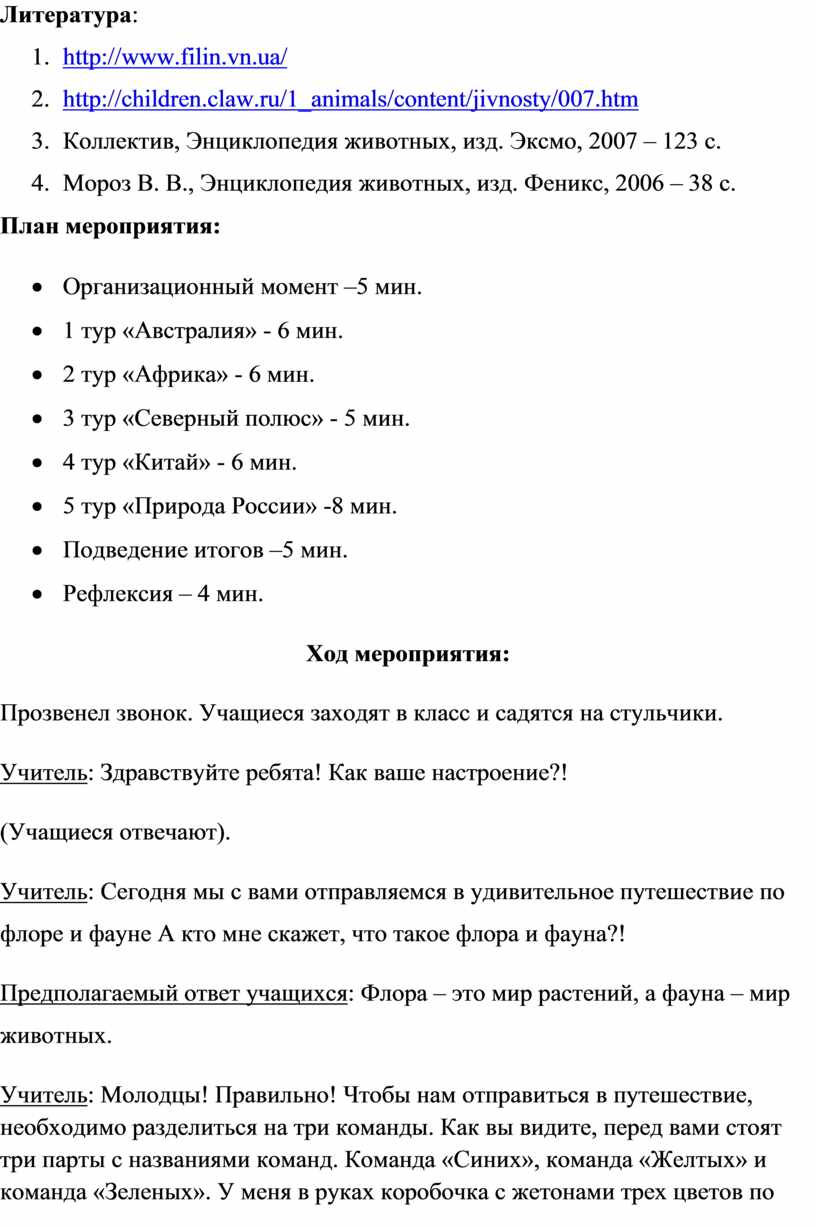 Учитель: Сегодня мы с вами отправляемся в удивительное путешествие по флоре и фауне А кто мне скажет, что такое флора и фауна?!