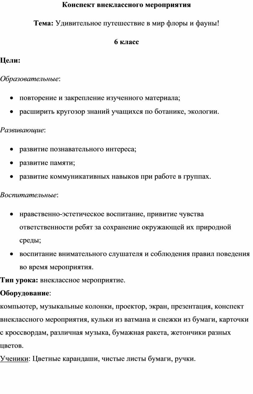 Тема: Удивительное путешествие в мир флоры и фауны!
