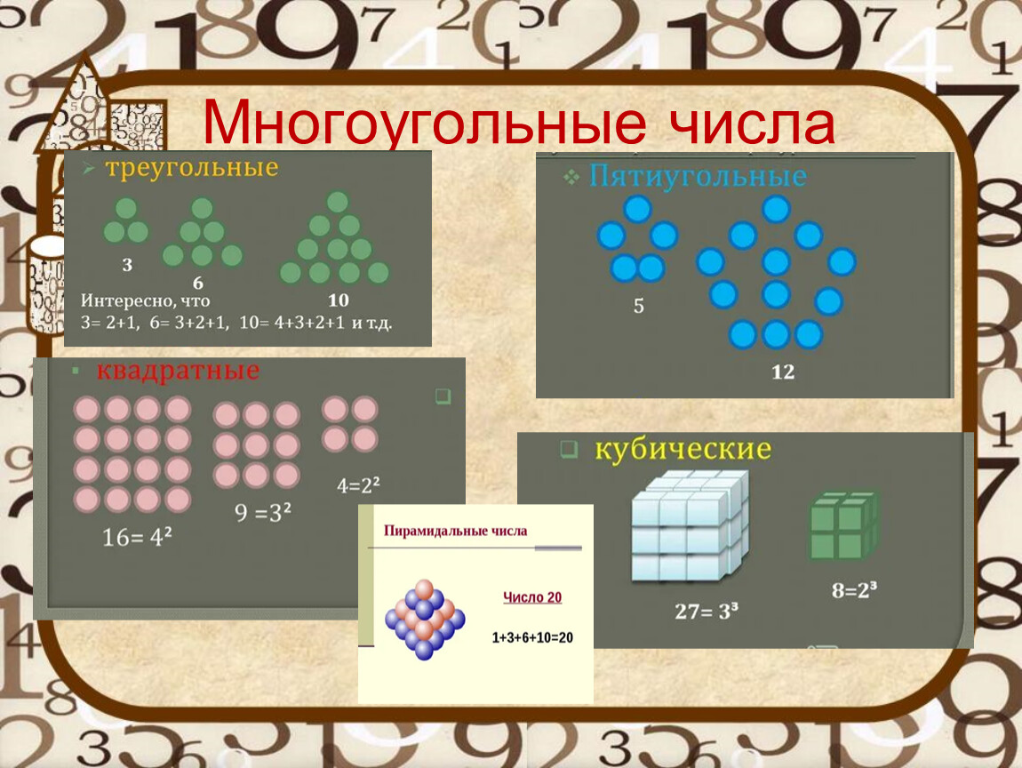 Плоские числа — числа, представимые в виде произведения двух сомножителей (4, 6, 8, 9, 10, 12, 14, 15, ...)