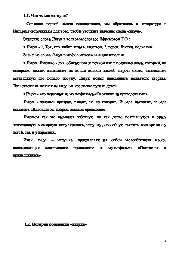 В соответствии со второй задачей, мы изучили историю появления «лизуна».