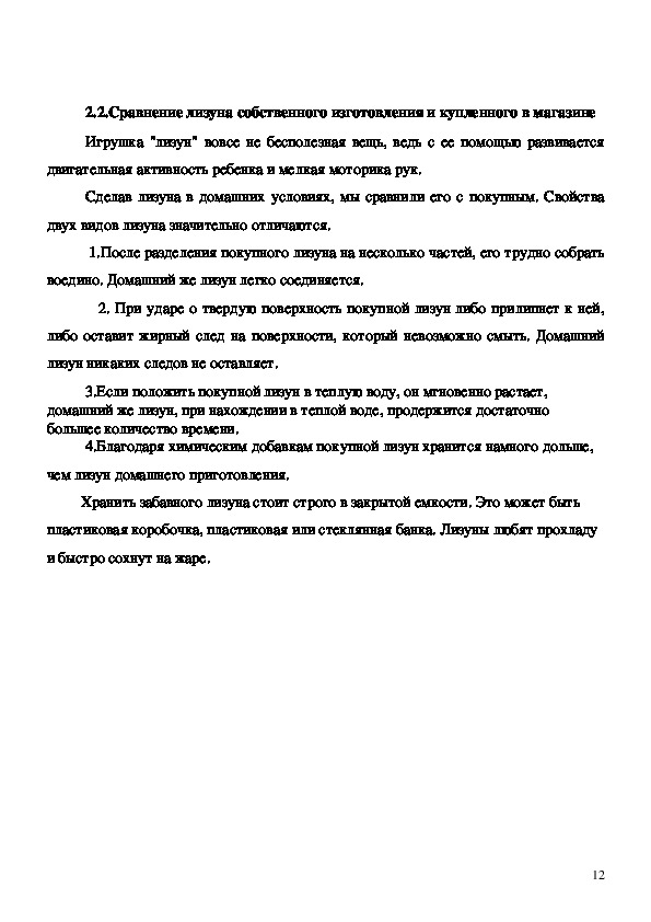 112.2.Сравнение лизуна собственного изготовления и купленного в магазине