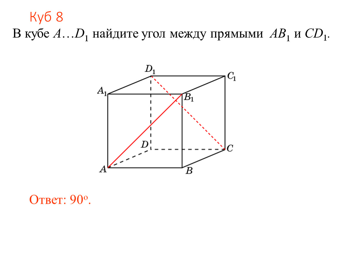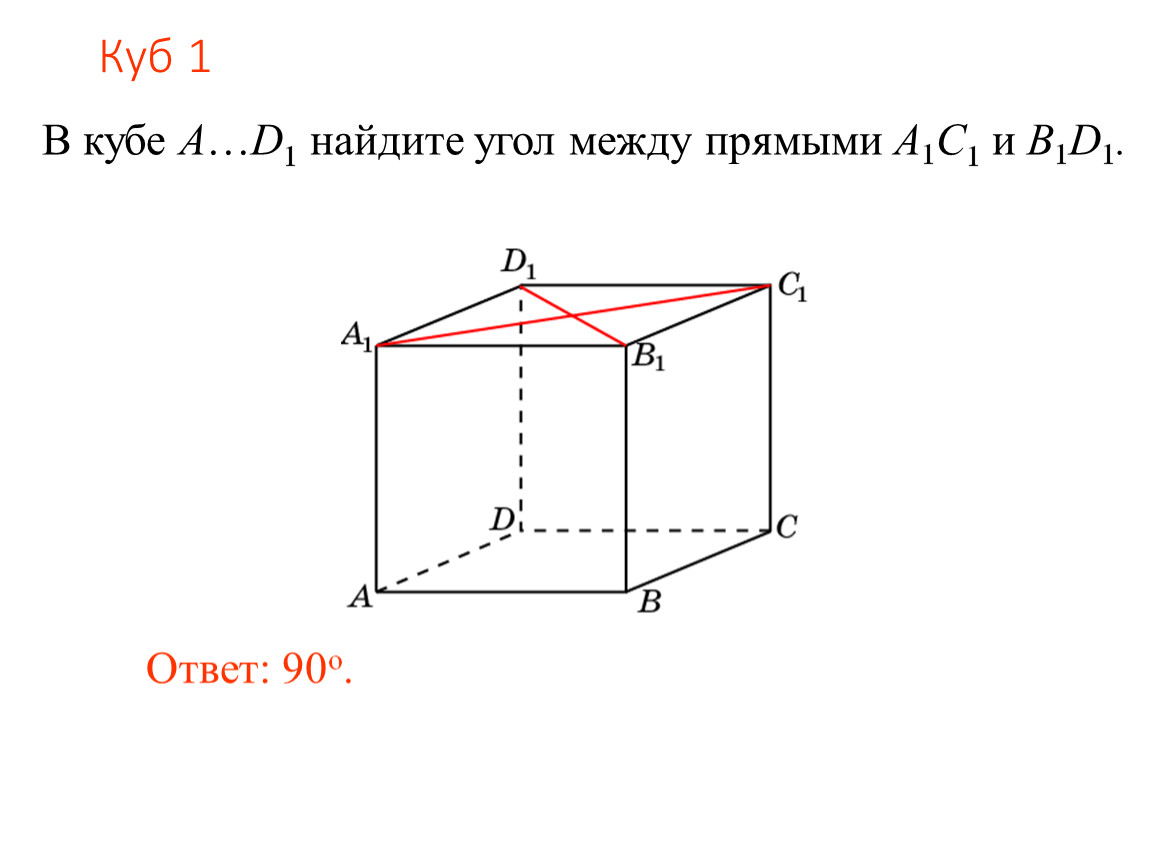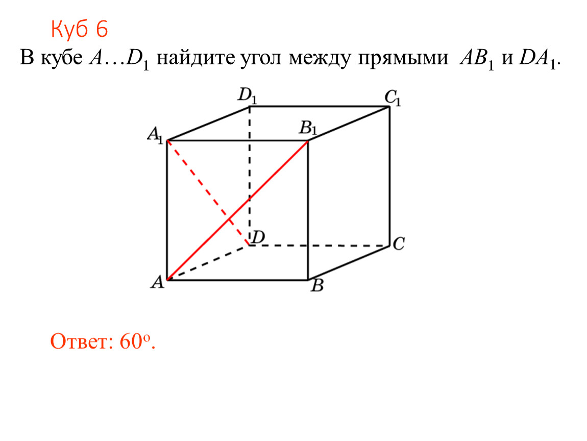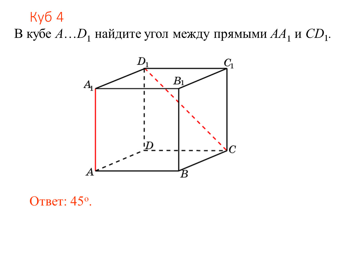 Угол между скрещивающимися прямыми АВ и СD определяется как угол между пересекающимися прямыми А1В1 и С1D1, при этом А1В1|| АВ и С1D1|| CD.