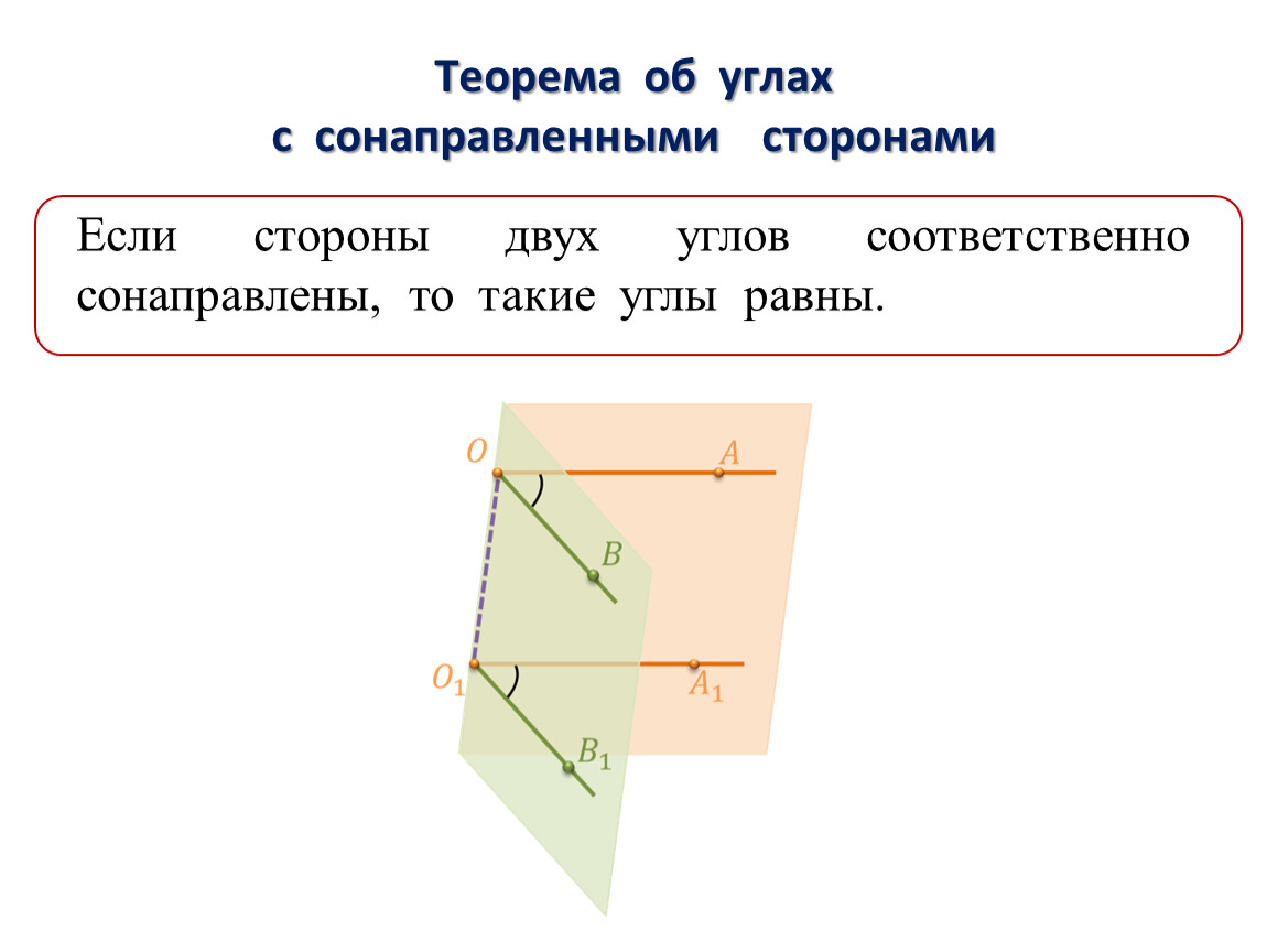 Если стороны двух углов соответственно сонаправлены, то такие углы равны.