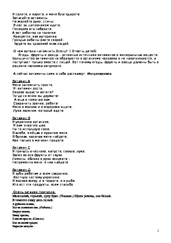 -А сейчас витамины сами о себе расскажут. Инсценировка.