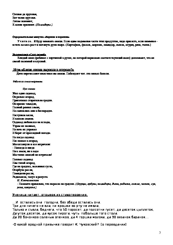 У ч и т е л ь . Я буду называть овощи. Если едим подземные части этих продуктов, надо присесть, если наземные