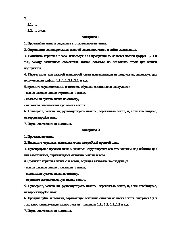 7. Перепишите план на чистовик.Уровень 1. Формулировка задания такая же, как и для уровня 2, но выполняют его