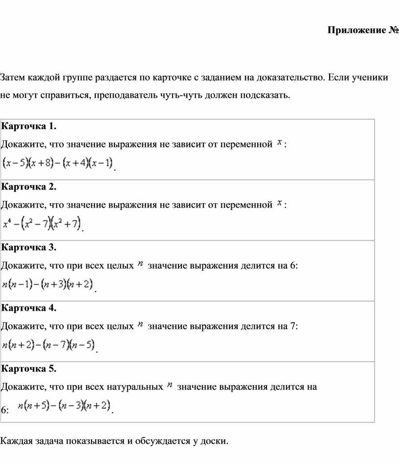 Затем каждой группе раздается по карточке с заданием на доказательство. Если ученики не могут справиться, преподаватель чуть-чуть должен подсказать.