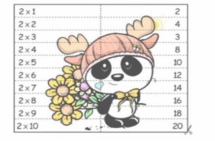 Ø У вас на партах листочки с заданием. Возьмите любой цветной карандаш и раскрасьте клеточки с числами – результатами таблицы умножения на 2.