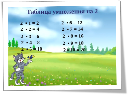 Таблица умножения на 2.