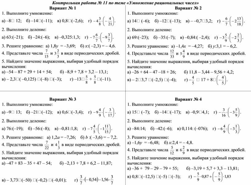 Контрольная работа № 11 по теме «Умножение рациональных чисел»