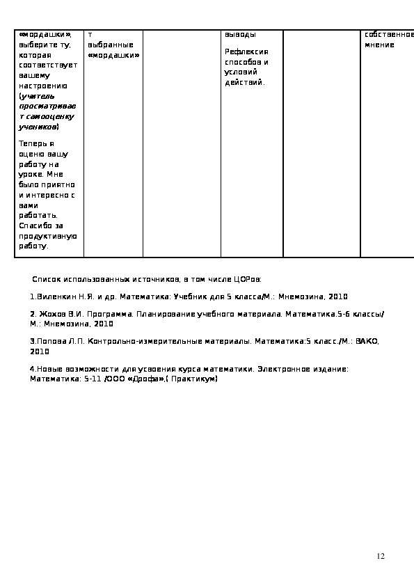 1.Виленкин Н.Я. и др. Математика: Учебник для 5 класса/М.: Мнемозина, 2010