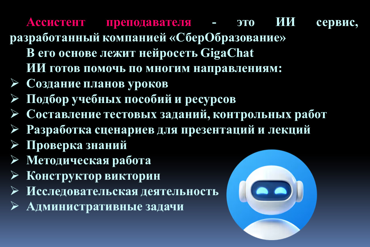 Ассистент преподавателя - это ИИ сервис, разработанный компанией «СберОбразование»