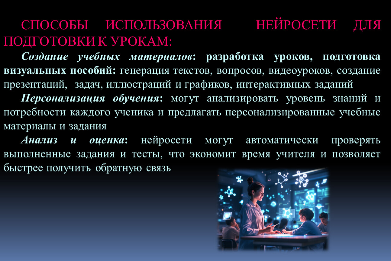 СПОСОБЫ ИСПОЛЬЗОВАНИЯ НЕЙРОСЕТИ ДЛЯ ПОДГОТОВКИ К УРОКАМ: