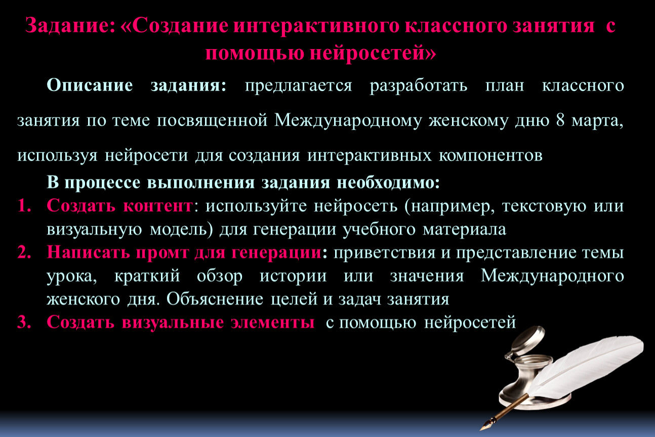 Задание: «Создание интерактивного классного занятия с помощью нейросетей»