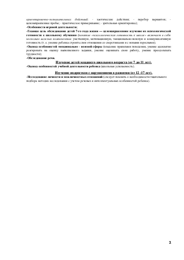 подбора методик исследования с учетом речевых и интеллектуальных особенностей ребенка).